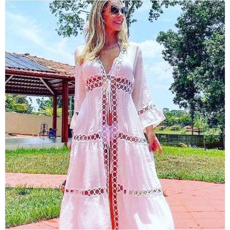 Saida de praia feminina puro simples quimono vestido longa banho mulher 00