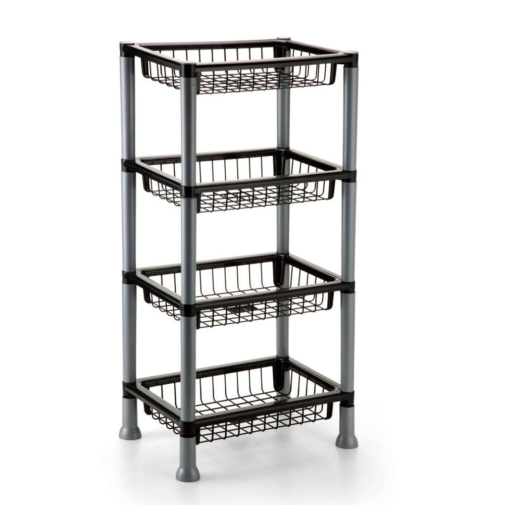 Cesto Organizador Multiuso 4 Andares Preto Prateleira De Frutas Legiumes Para Cozinha