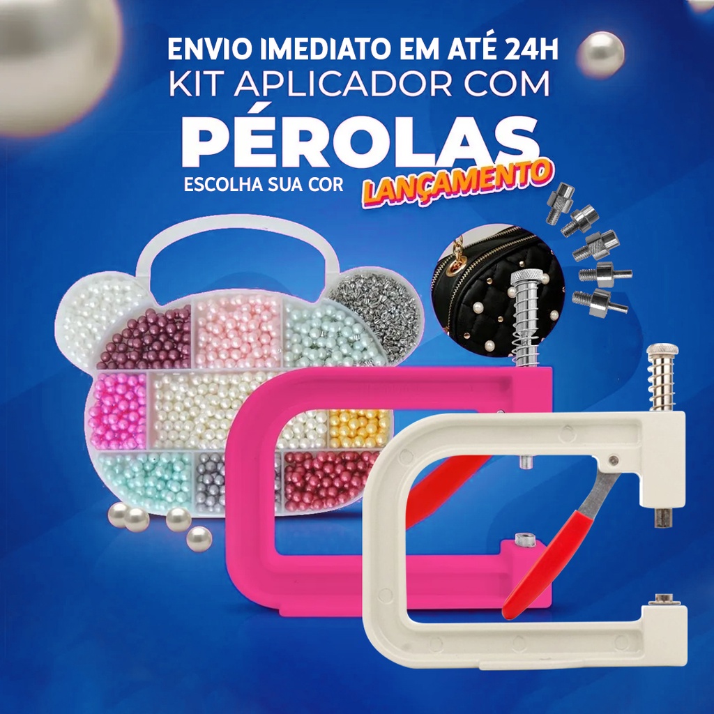 Aplicador De Pérolas + 5 Matrizes Com 1100 Perolas E Rebite Artesanato Patchwork Scrapbook com 1 ano de Garantia