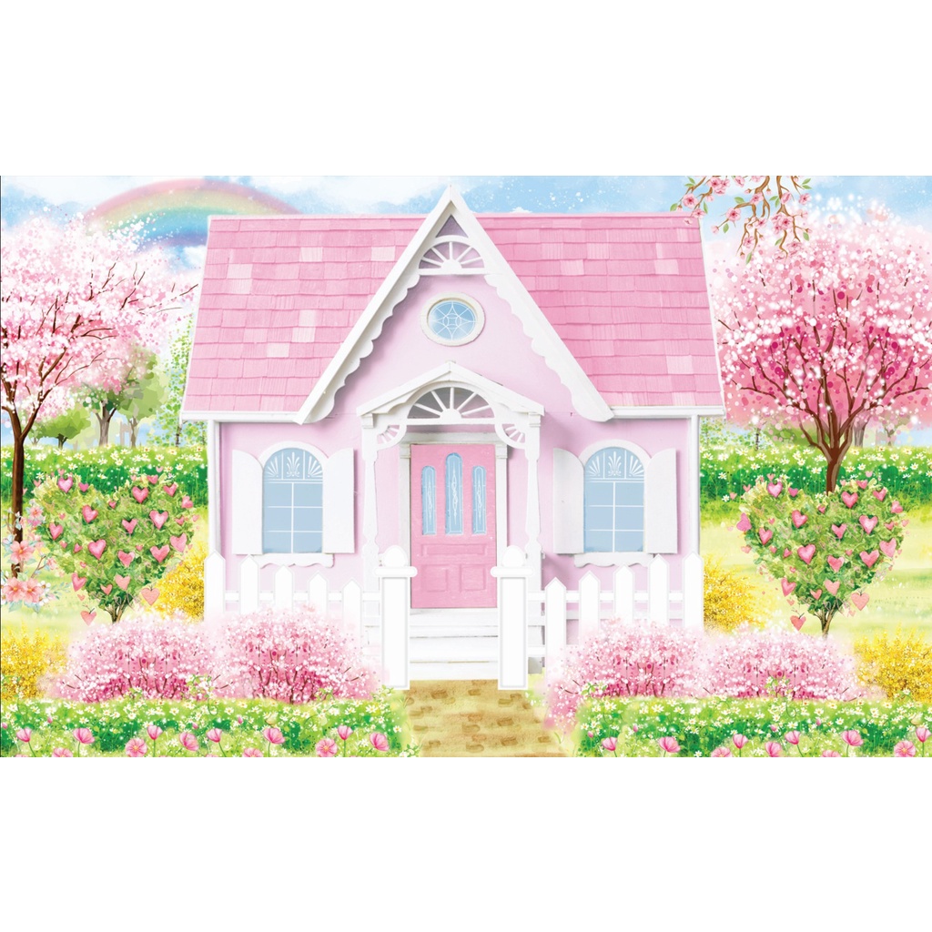 Painel Retangular Sublimado Em Tecido Tema Casa de Boneca
