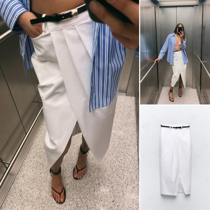 24 Primavera Verão Novo Estilo de Verão Novo Estilo de Verão Decoração de Cinto de Cor de Contraste com Flauta de Bolso Flauta de Cintura Alta Saia Reta1165063