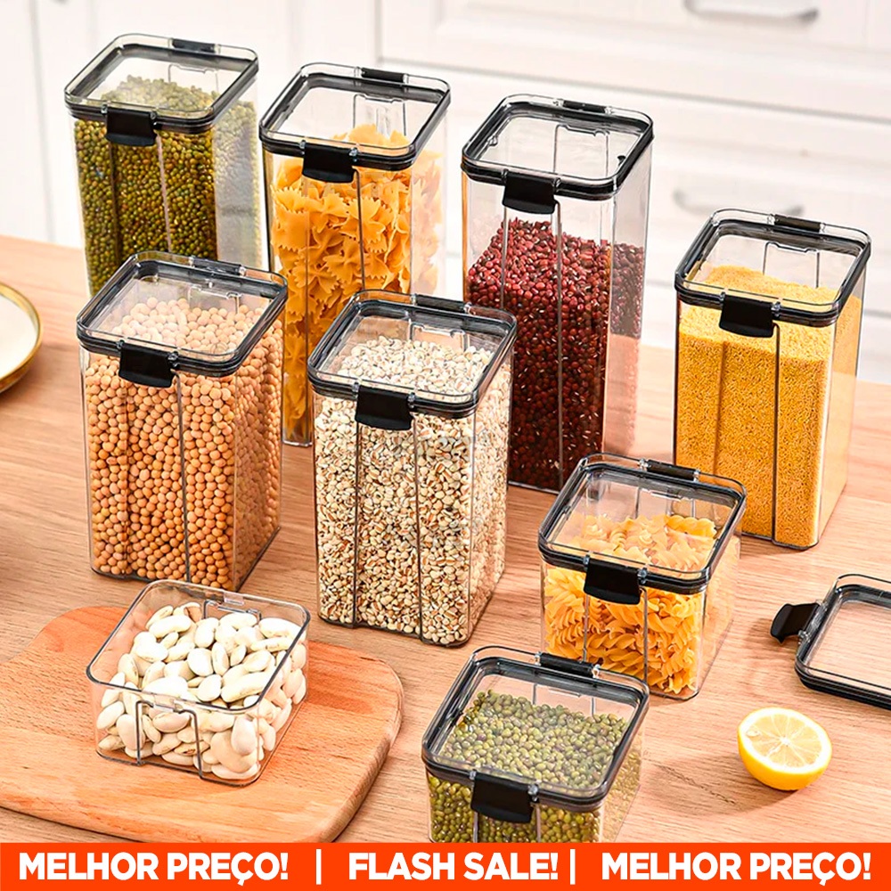 Kit 5 Potes Pote Hermético Acrílico Organizador Slim Click Tampa Trava Com Alta Vedação Em Silicone Empilhável Organiza Cozinha Armário Porta Mantimentos Casa Utilidade Multiuso - ENVIO IMEDIATO