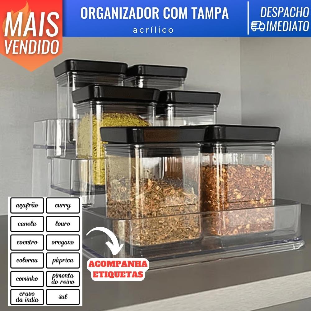 Kit Porta Temperos Lumini C/ 7 Peças Hermético Multiuso Empilhavel De Acrílico