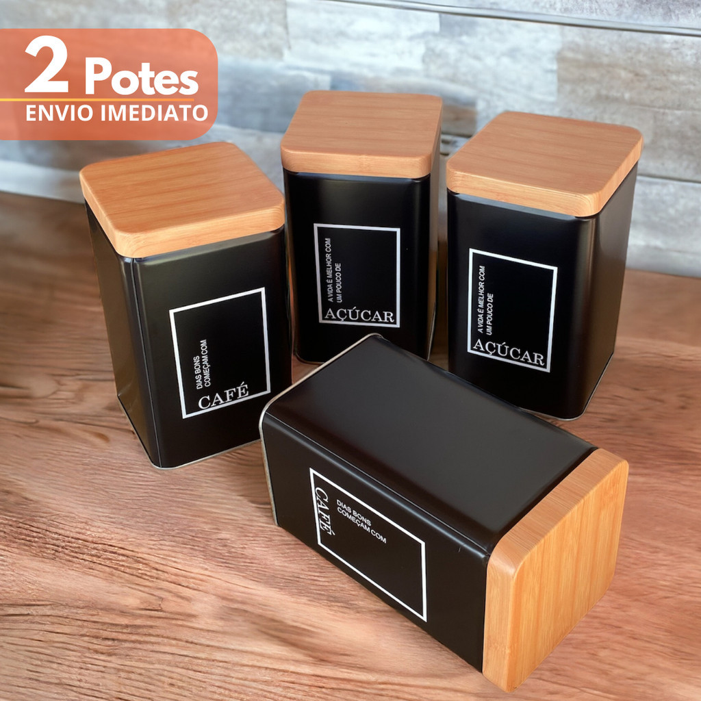 Kit 2 Latas Pote Café e Açúcar Porta Organidor de Cozinha Mantimentos Multiuso Metal Casa
