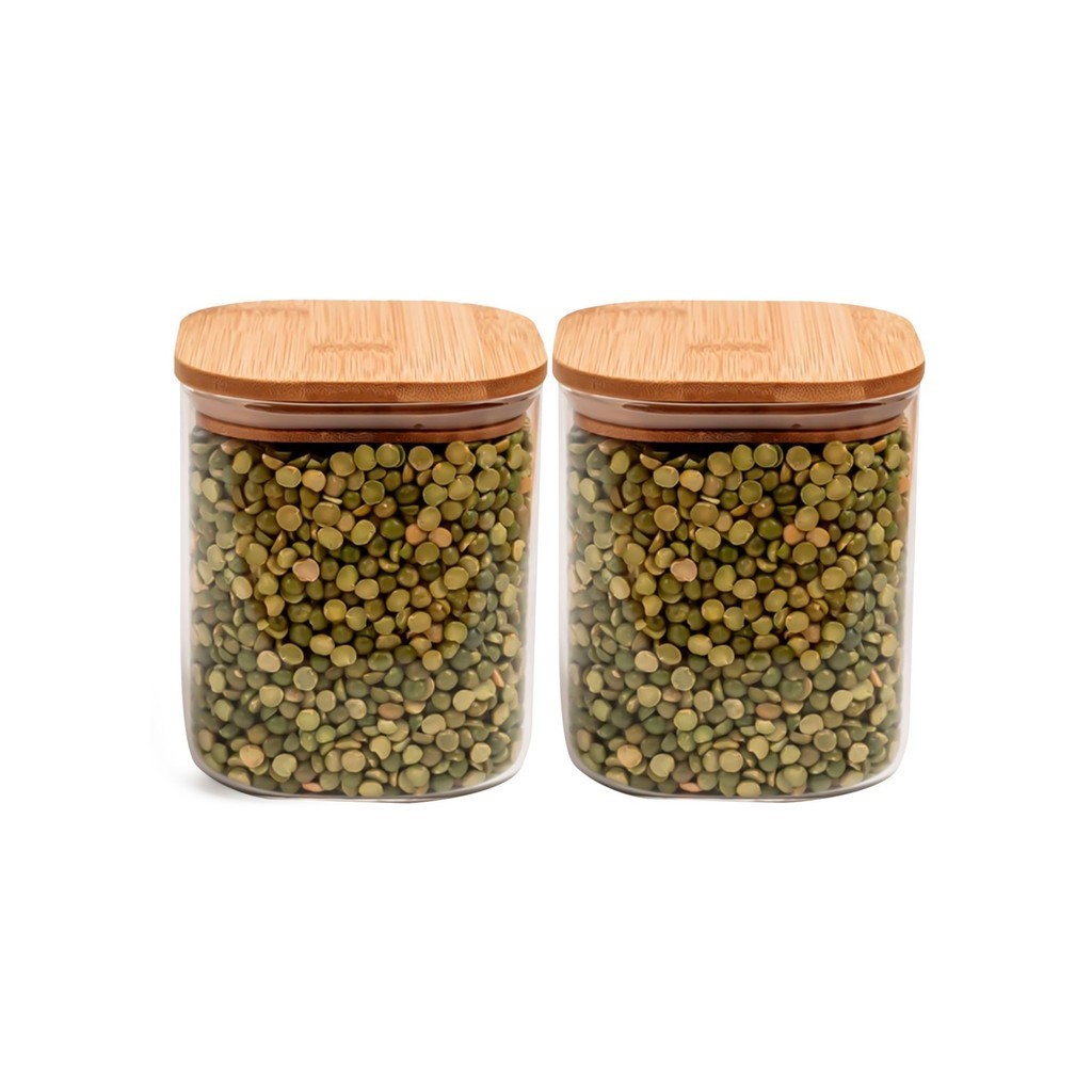 Kit 2 Pote Porta Condimentos Mantimentos Design Versátil Tampa De Bambu Quadrado Hermético 700ml