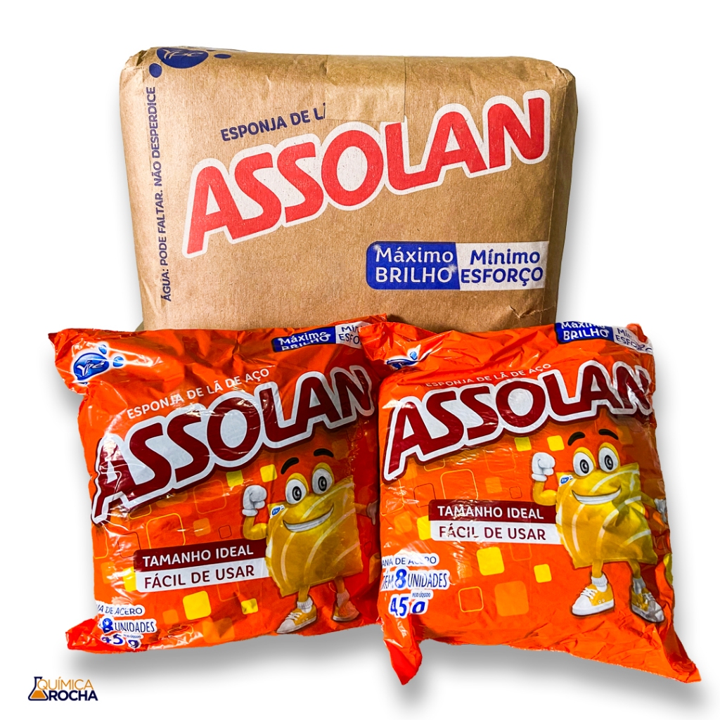 Esponja de Lã de Aço Assolan (Fardo com 20 pacotes de 8 unidades cada)