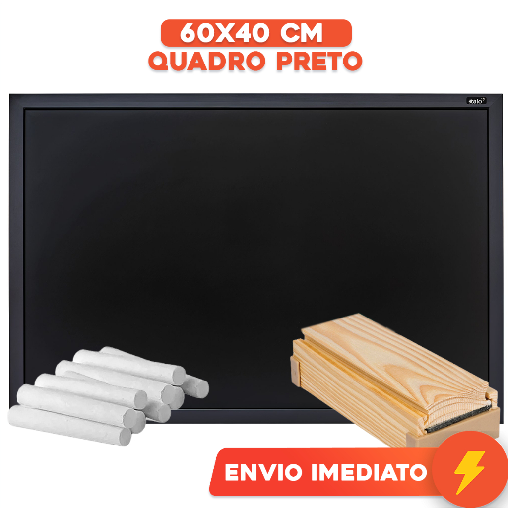 Lousa Preta Quadro Negro 60x40cm Moldura Soft Colors Preto + Apagador Giz Para Anotação Aula Recado
