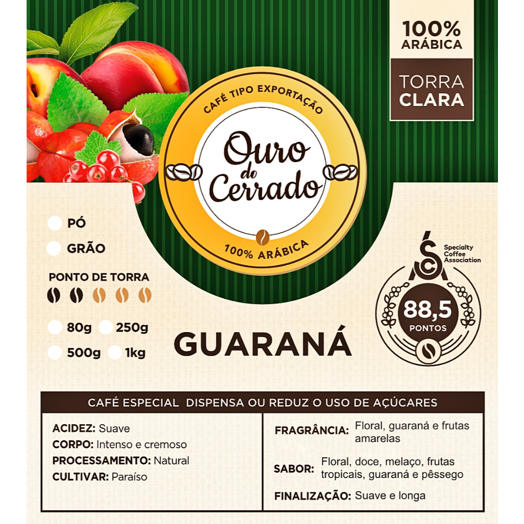 Café Guaraná 88,5 pontos SCA torra clara especial acidez lática