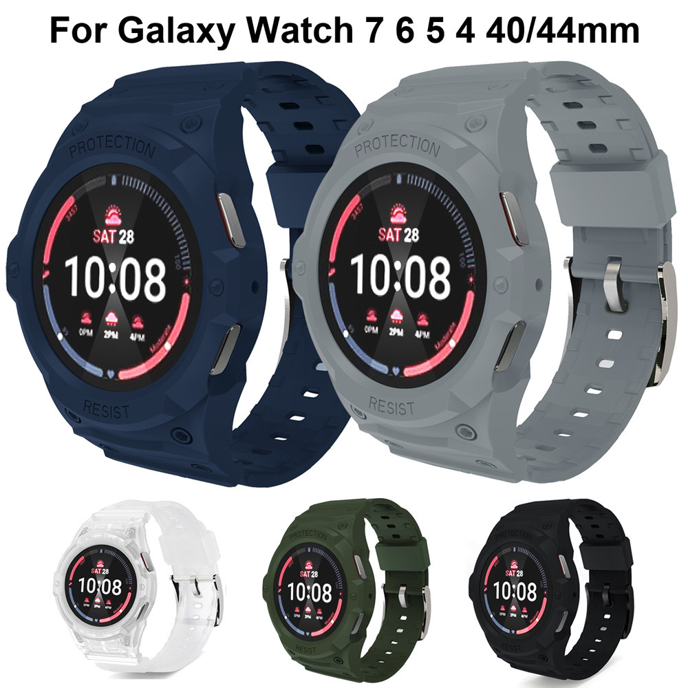 Pulseira De Relógio À Prova De Choque Para Samsung Galaxy Watch 7 6 5 4 40mm 44mm Silicone Protetor Capa Pára-Choques
