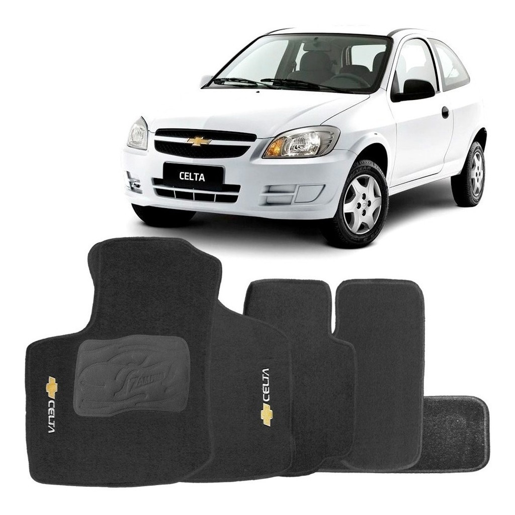 Jogo Tapete Automotivo Carpete Celta 20012002 2003 2004 2005 2006 2007 2008 2009 2010 2011 2012 2013 2014 2015 Acabamento Cinza com Logo Bordado