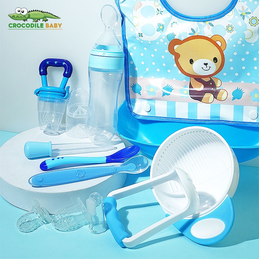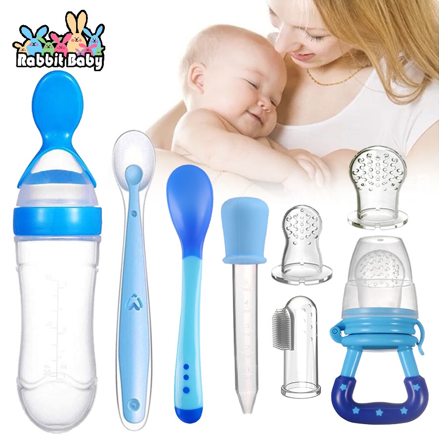 Colher dosadora bebê Kit de Silicone mamadeira colher chupeta de fruta Escova de dentes Conta gotas 8 em 1 pacote de alimentação