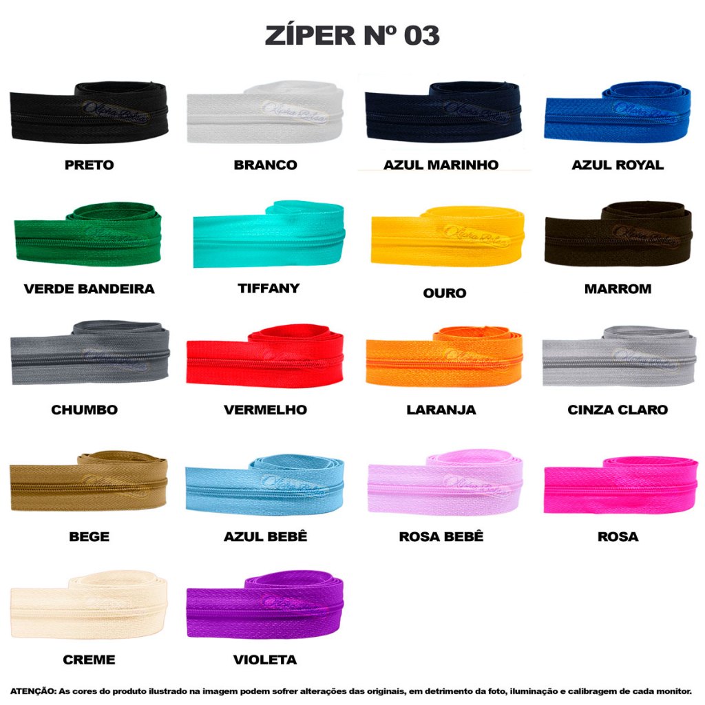 Zíper Nº 3 Fino 20 metros - escolha a cor