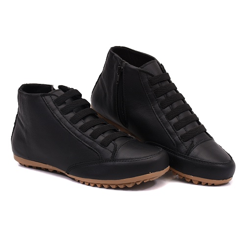 Botinha Casual Feminina Rasteira Em Couro Legítimo De Ajuste Elástico e Zíper Confortável Para o Seu Dia a Dia