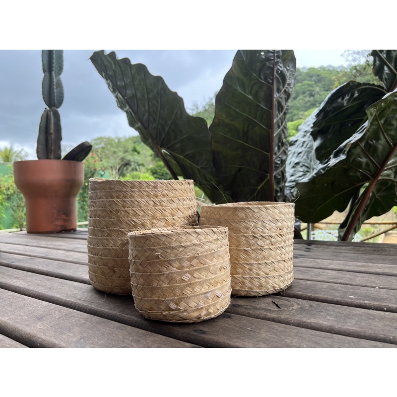 kit 3 cestos de palha artesanal (10x15 + 15x20 + 20x25)