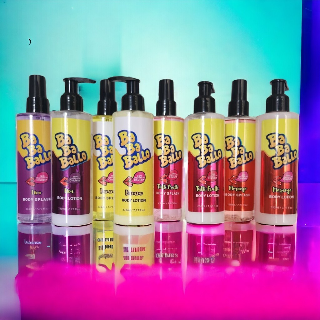 Kit Hidratante Corporal + Body Splash - Bebeloo com Cheirinho de Chiclete (Bubbaloo/Babalu/Babablu/tutti frutti) 230G