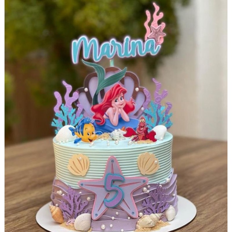 Topo de Bolo Pequena Sereia 08 - personalizado com nome e idade