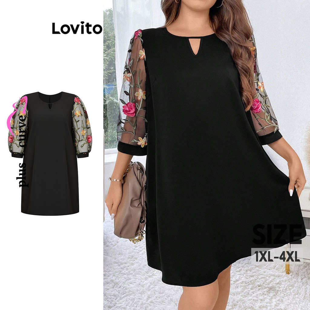 Lovito Vestido feminino com costura em tecido bordado simples e curva plus size LBL15491