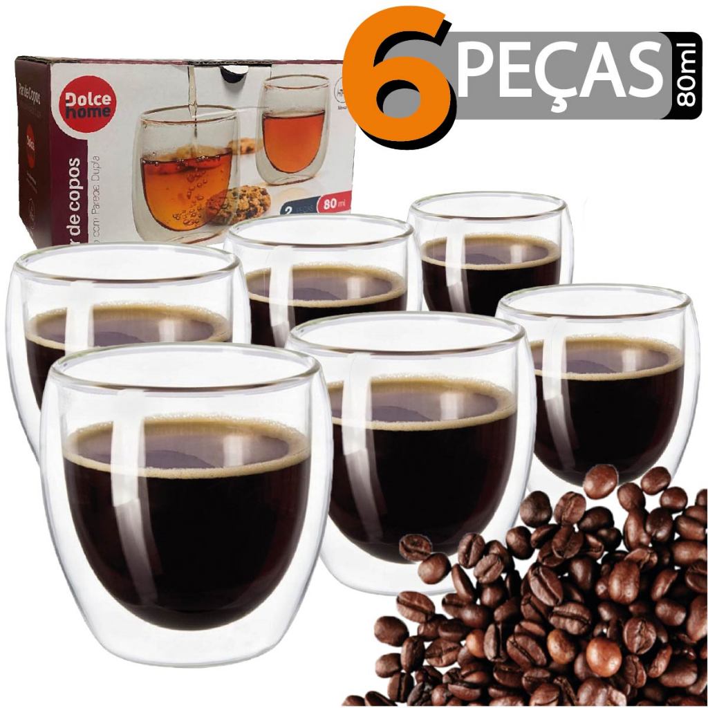 Jogo 6 Xícaras P/ Café Dupla Parede De Vidro 80ml Barato Vidro Duplo