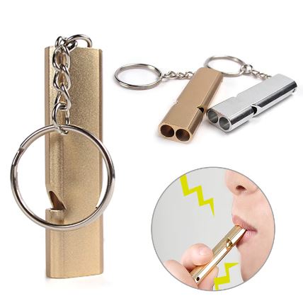 Apito ao ar livre chaveiro portátil de alto decibéis de aço inoxidável tubo duplo de sobrevivência de emergência ferramenta multifuncional
