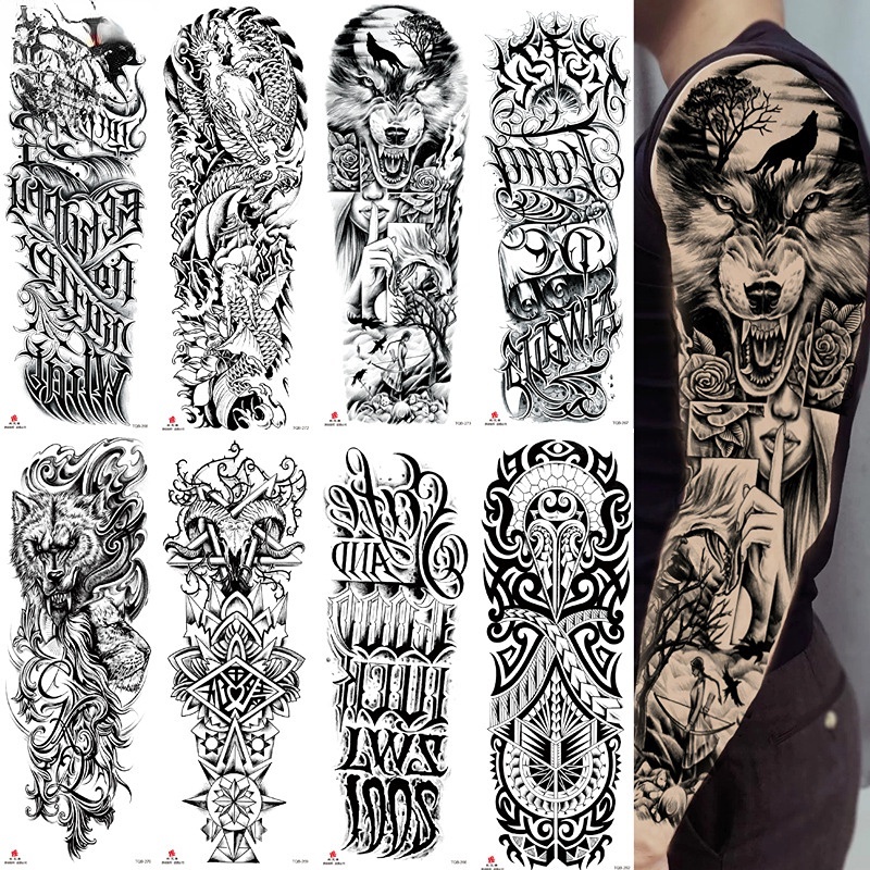 Tatuagens Temporárias Braço Cheio De Corpo Inteiro Grande Manga Para As Mulheres Homens À Prova D'água Preto Tatuagem Adesivo Crânio Leão Lobo Relógio Tatoo Especial