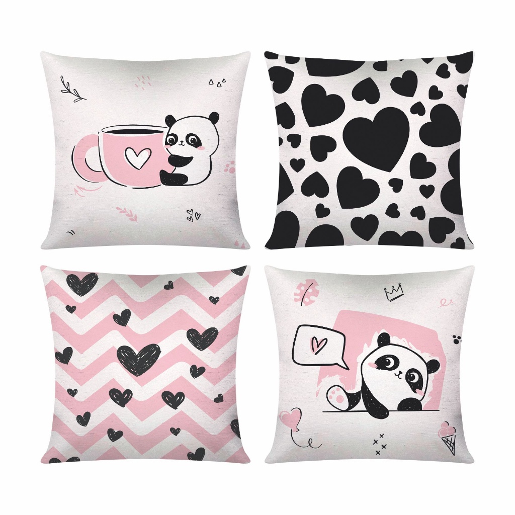 Kit c/ 4 Capas de Almofada Decorativas Modern Print 45x45 - Panda Rosa