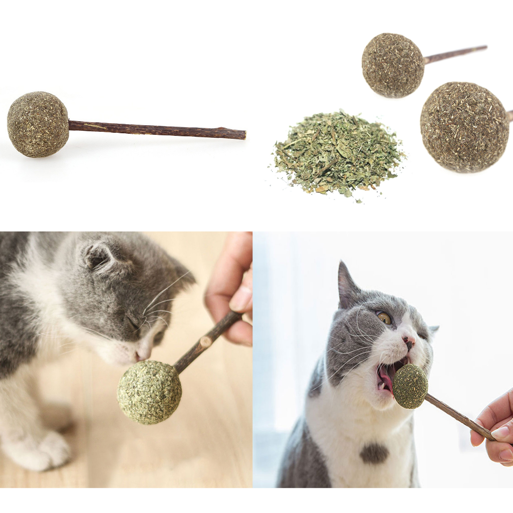 Pirulito Bola Catnip para Gato Cabo Madeira para Limpar Dente Erva Gato Natural Antiestresse Relaxa Brinquedo Divertido Interativo LR-0192