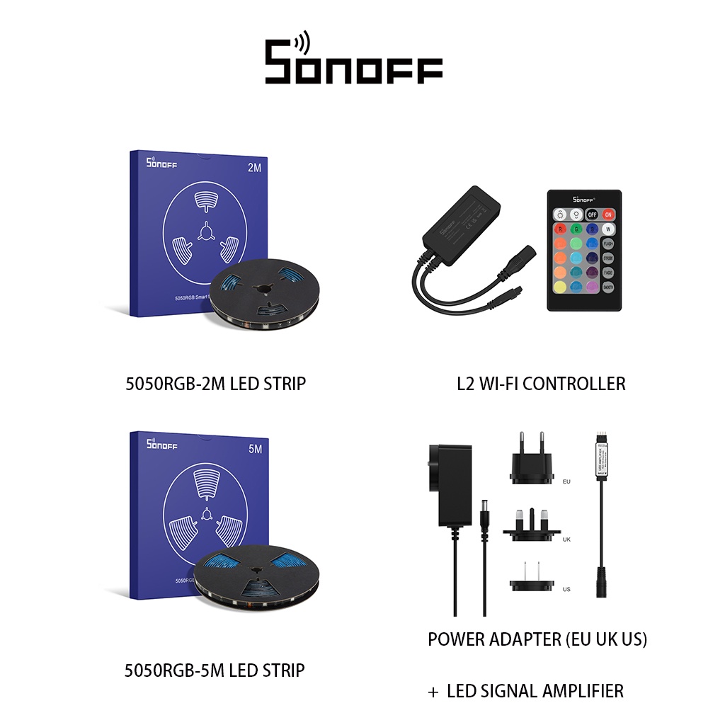 SONOFF Adaptador De Energia LED 5050RGB Com 3 Tipos UK/Eua/Ue/Amplificador De Sinal , Acessórios Para Controlador Wi-Fi