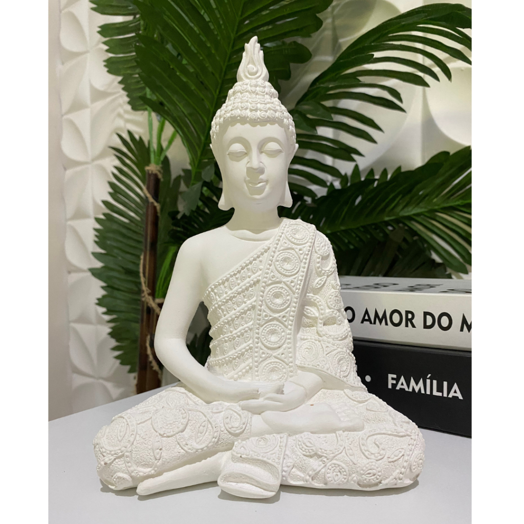 Buda Hindu Meditando 24cm Prosperidade Estatua Decoração De Gesso Cru