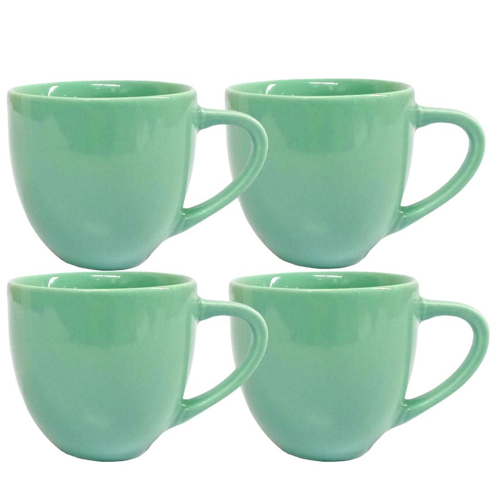 Jogo 4 Xicara Café Chá Porcelana 170ml > Cor Verde