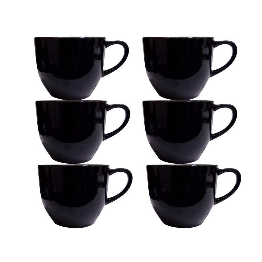 Jogo 6 Xicara Café Chá Porcelana 95ml > Cor Preta