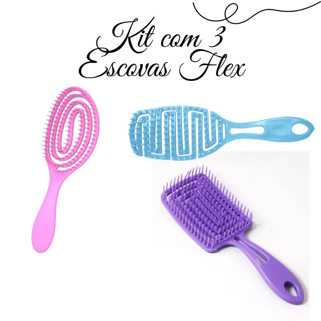 Kit com 2 escovas de cabelo raquete hair quadrada flexível anatômica