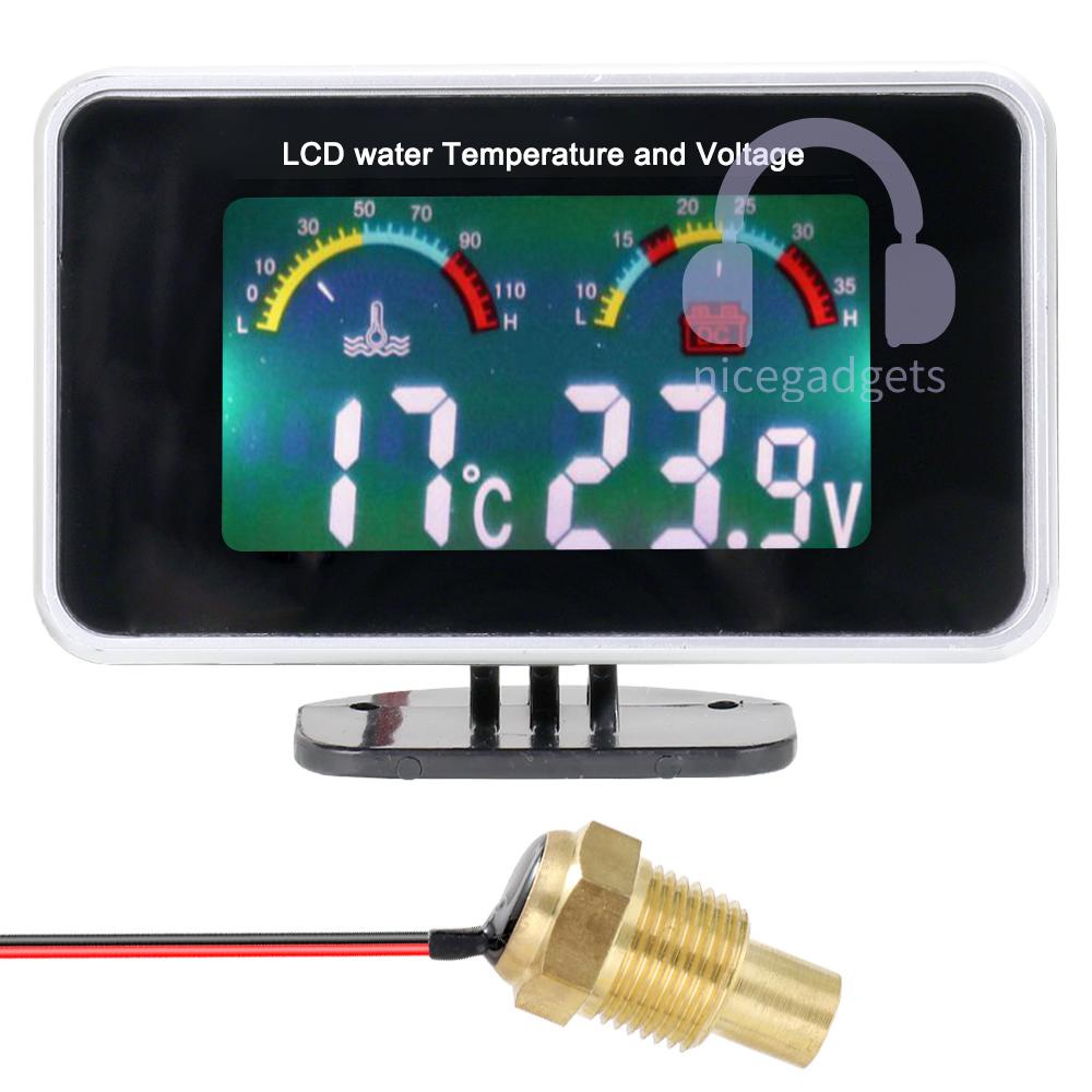 Kool 12 24V Medidor Indicador De Temperatura Da Água Digital LCD Voltímetro 2 Em 1