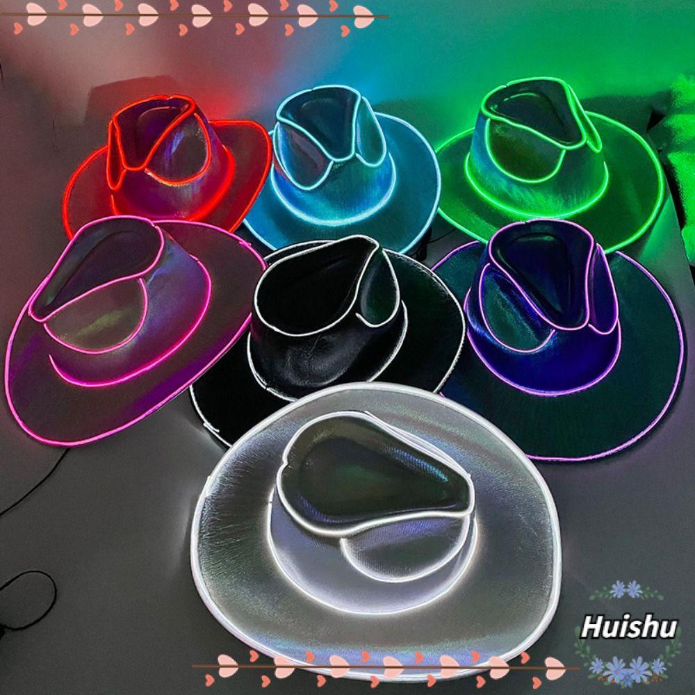 HUISHU Chapéu De Cowboy Led Sem Fio , Neon Space Discoteca Concerto Festa Iridescente Jazz , Cosplay Wide Brim Unisex Cowgirl Homens