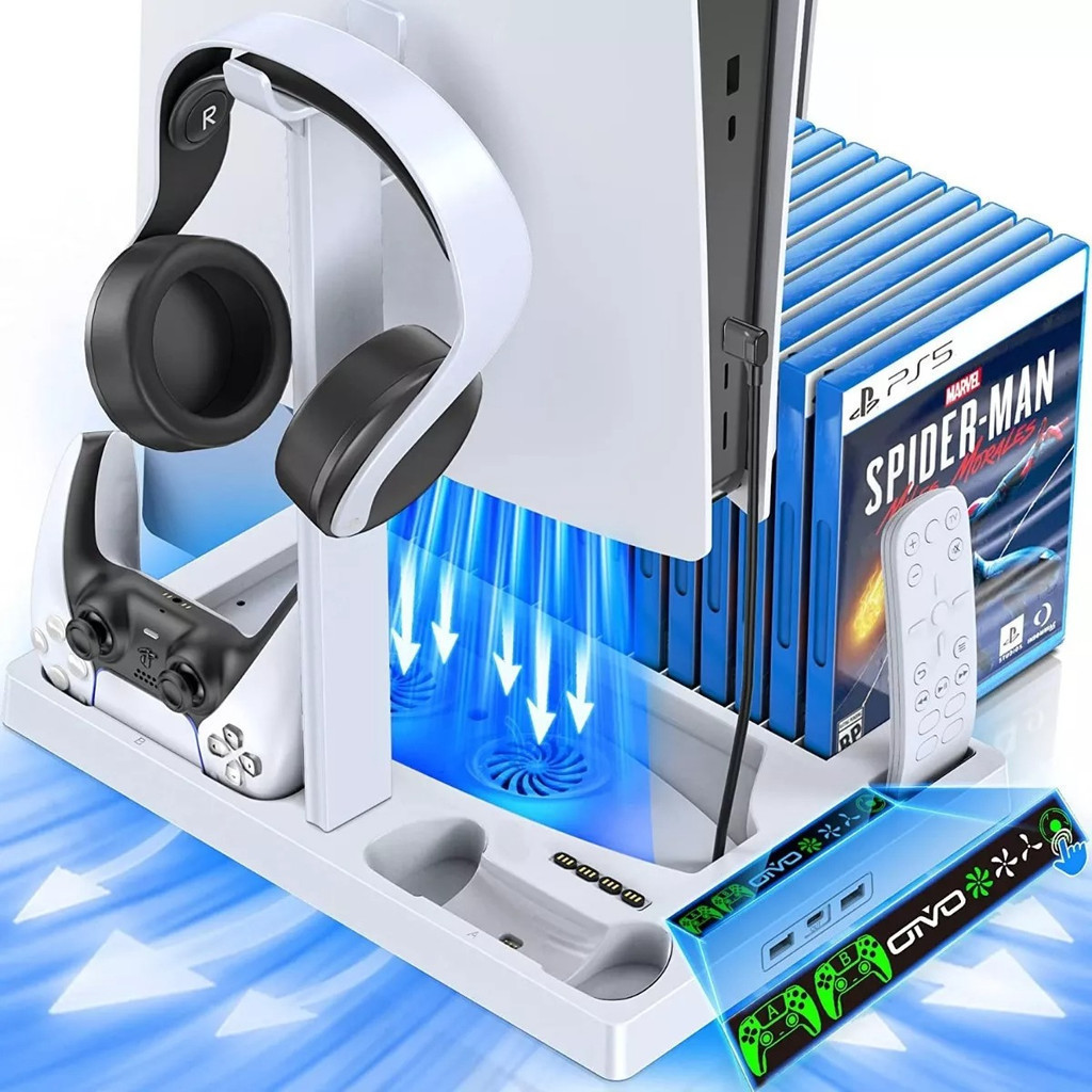 Suporte Horizontal OIVO PS5 com Resfriamento 3 Níveis e Carregador Duplo para Controlador