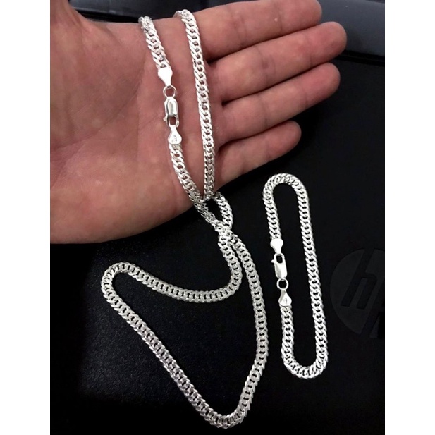 Conjunto Elo Duplo corrente 70cm + pulseira prata 925 italiana banhada