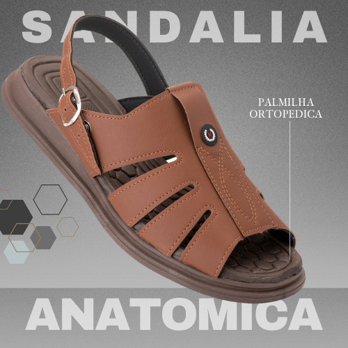 Sandalia Masculina de Couro cor Cafe Ortopedica Sola Anti Stress de Alta Qualidade PROMOÇÃO MELHOR PREÇO DO SHOPEE