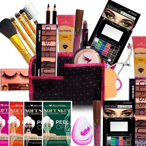 Kit de Maquiagem Completo Profissional 20 Itens com Pincéis, Paleta e Necessaire
