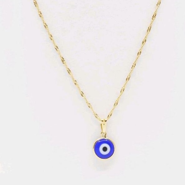 Colar Cordão Corrente Com Pingente Olho Grego Azul Sorte Proteção Folheado a Ouro Feminino