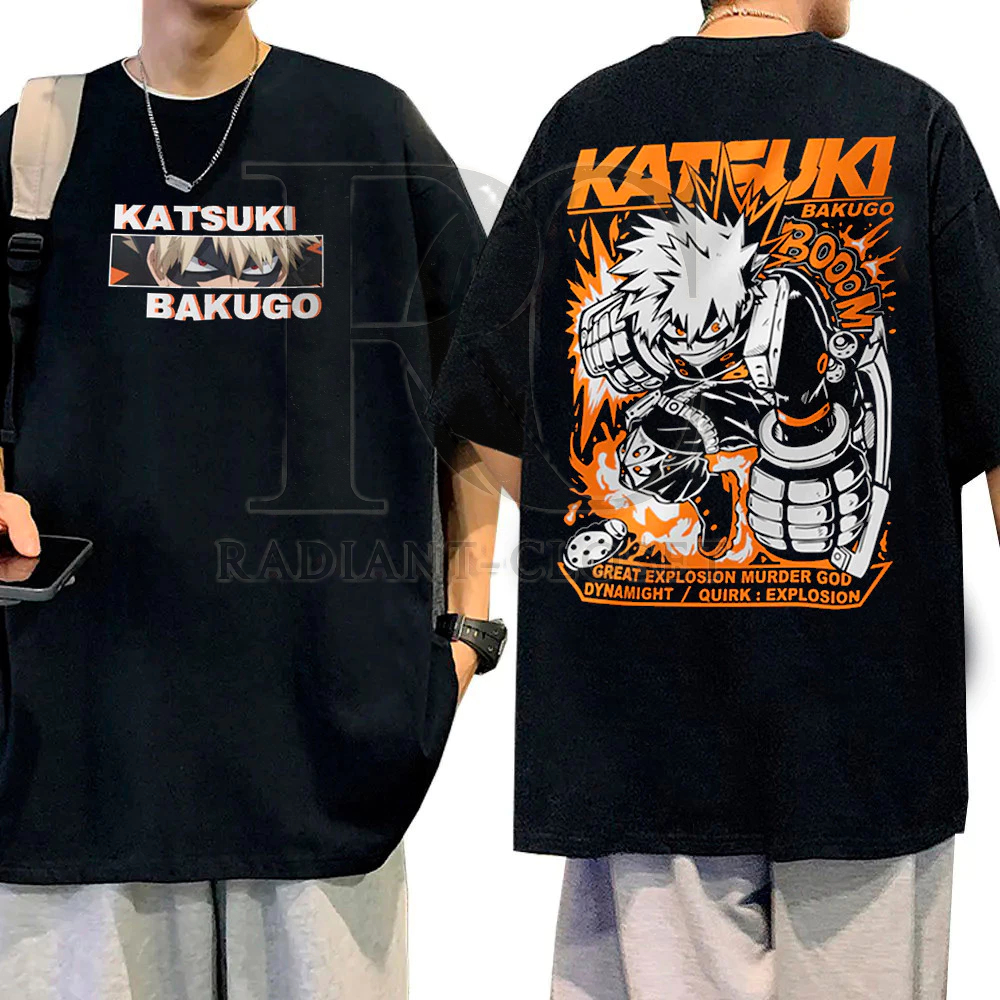 Camiseta Básica Anime My Hero Academia Bakugo Camisa 100% Algodão Streetwear Temos Plus Size Lançamento - Envio Rápido