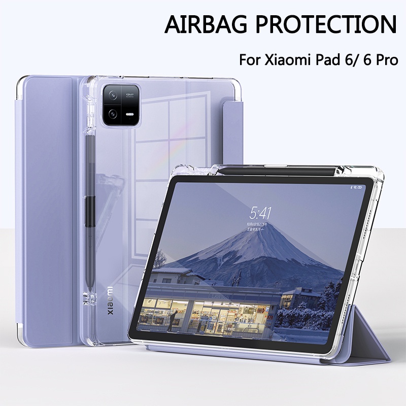 Capa TriFold Para Xiaomi Pad 6 Pro 2023 Mi 5 Auto Wake/Sleep Transparente TPU Costas De Couro Com Porta Lápis Redmi 10.61