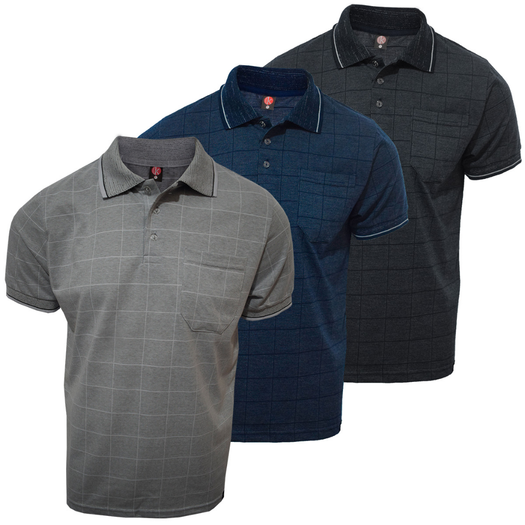 Kit 3 Peças Camisa Polo Xadrez Com Bolso Atacado