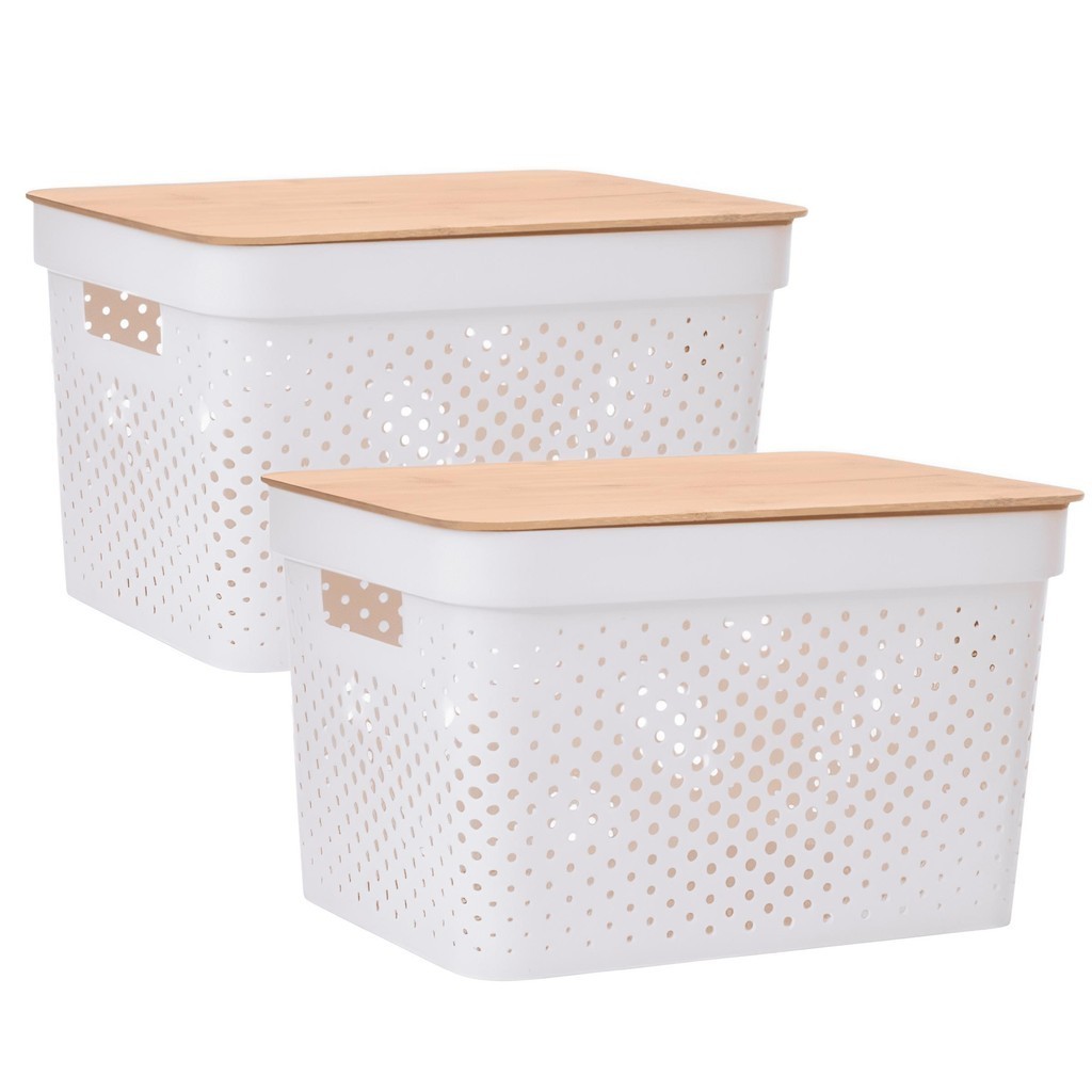 Kit 2 Caixas Cesto Organizador com Tampa de Bambu 12 litros 35x26x22CM