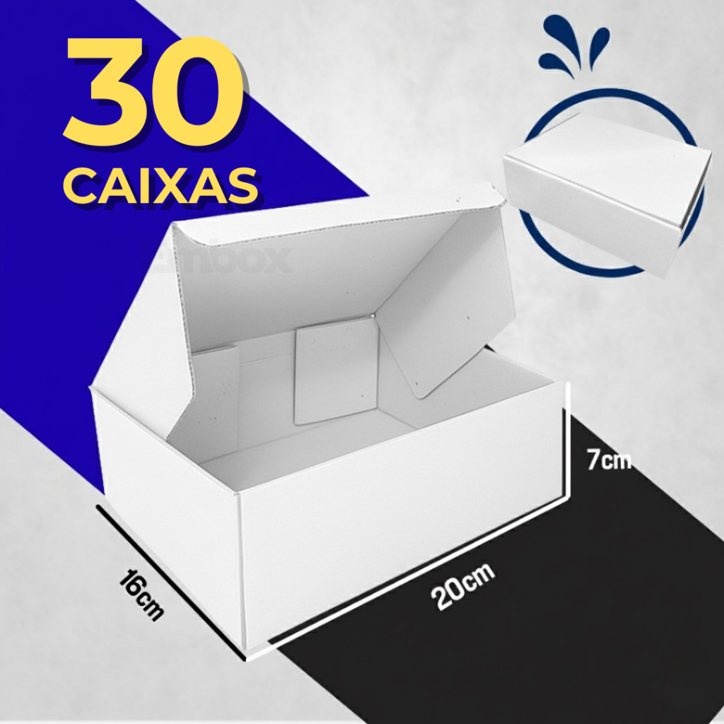 Kit 30, 20 ou 10 Caixas de Papelão Branca 20x16x7cm Envios E-commerce Correio Cosméticos Acessórios