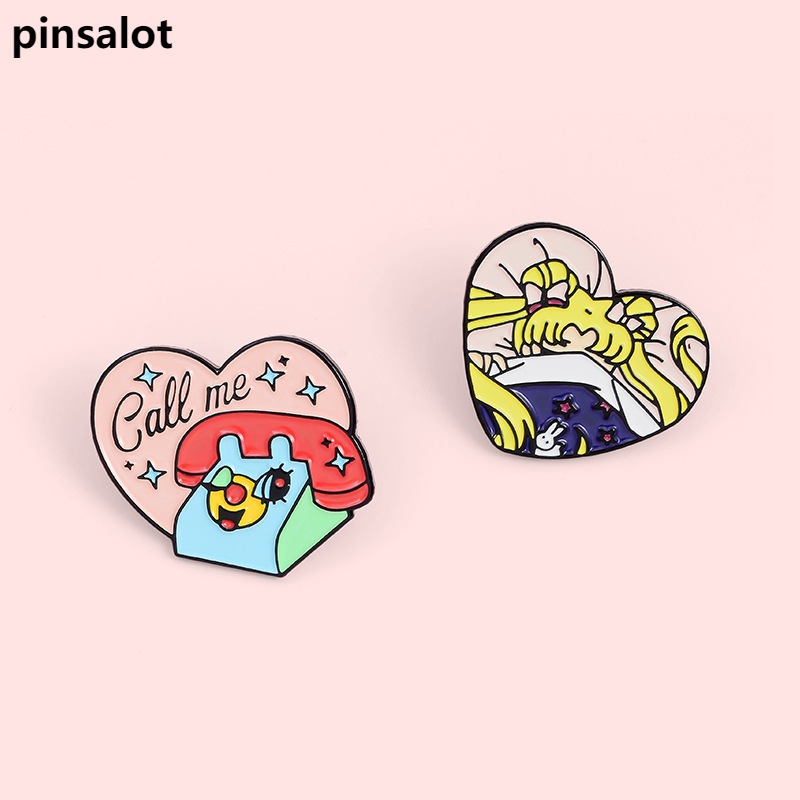 Criativo Broche De Esmalte Bonito Alfinete Linda Garota Guerreira Fixa Rosa Telefone Me Chame Cartoon Acessório Personalizado De Crachá De Liga