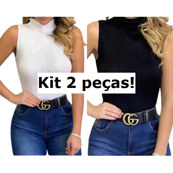 Blusa Feminina Kit 2 Un Garrafinha Gola Alta Trico Canelado