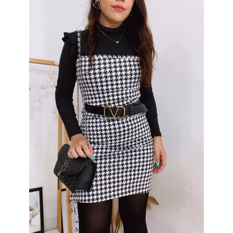Kit 2 peças vestido xadrez + blusa gola alta manga longa