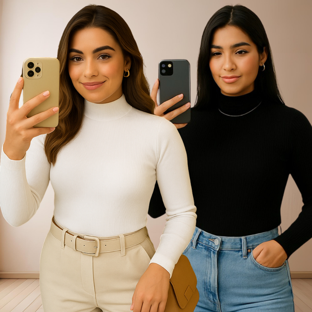 Kit 2 Peças Blusa Feminina Gola Alta Manga Longa Segunda Pele Inverno