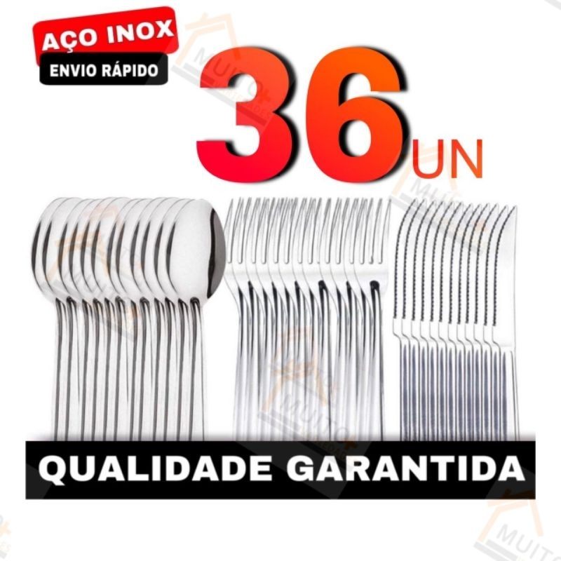Jogo de Kit Talheres 36 peças Aço Inox 12 Facas 12 Garfos e 12 Colheres de Mesa Casa Para Cozinha Hotel Buffet Pousada