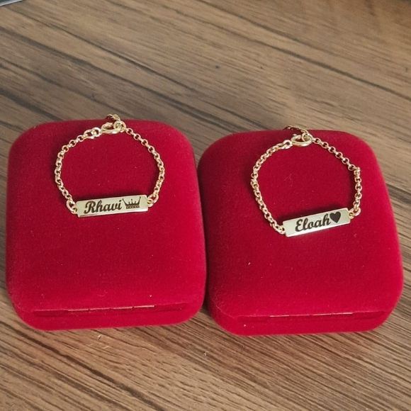Pulseira Infantil Bebê Com Nome Gravado Folheada a Ouro 18k