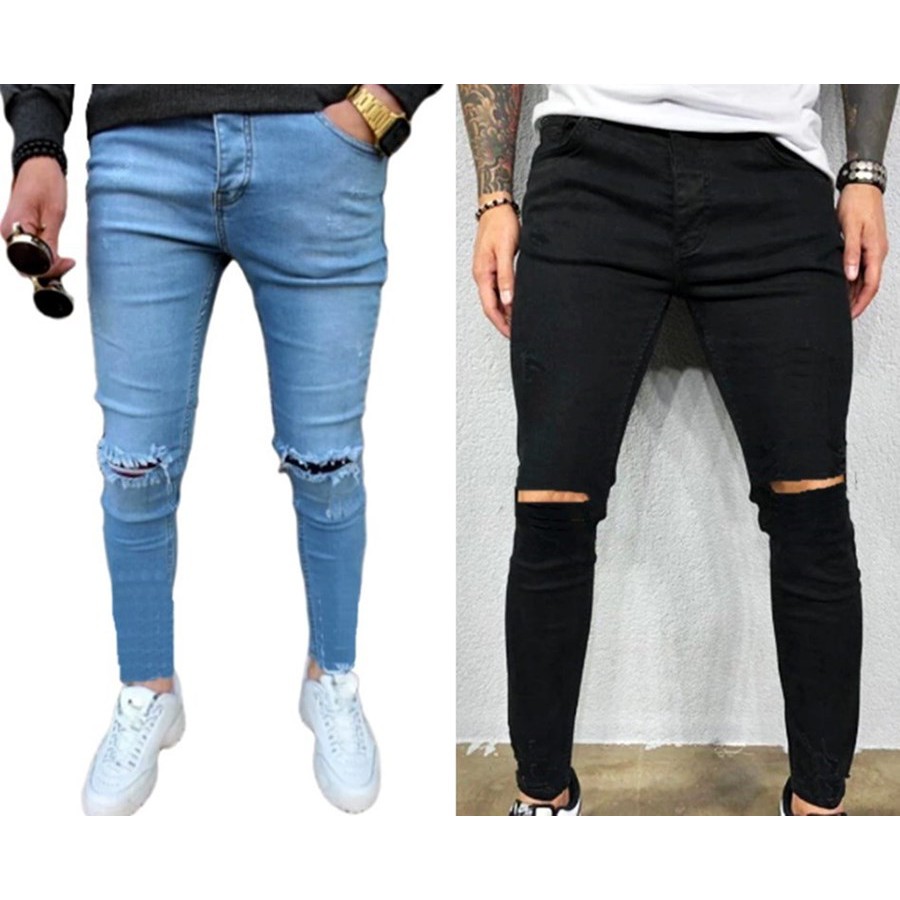 Calca Jeans Masculina Destroyed Rasgada Skinny Com Laycra Elastano Duas Cores Pronta Entrega.